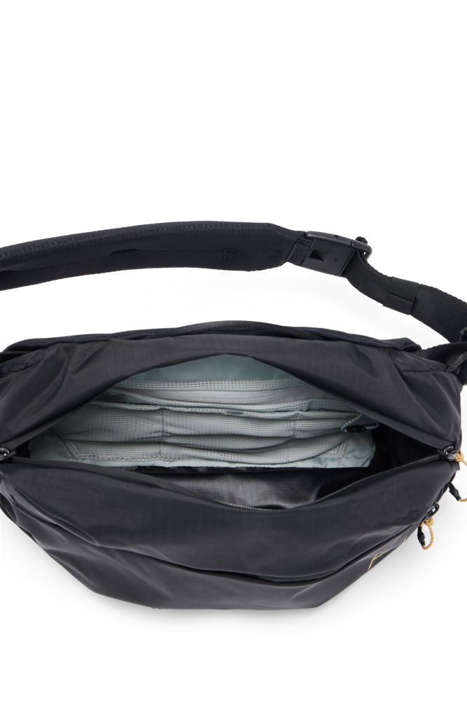 De slanke, ultralichte en veelzijdige Peak Design Outdoor Sling 7L is een avontuurlijke metgezel die je aan het werk kunt zetten tijdens een trektocht door het achterland of tijdens woon-werkverkeer in de stad - waar je hem ook mee naartoe neemt, hij heeft de strakke vorm en briljante functionaliteit die je nodig hebt. Een snel verstelbare gewatteerde schouderriem met op maat gemaakte, met glas versterkte nylon hardware maakt het mogelijk om hem kruislings of met je middel te dragen, en het Cord Hook™ stabilisatiekoord kan worden vastgeklikt voor gebruik tijdens het fietsen en actieve bewegingen. De lichtgewicht Terra Shell™ 210D ripstop 100% gerecycled nylon buitenkant is slijtvast en weerbestendig dankzij een PU-coating, PFAS-vrije waterafstotende behandeling en stoere #5 weerbestendige UltraZips™. Er is een gevoerde zak voor je telefoon met magneetsluiting, een externe zak met ritssluiting met snelle toegang en 8 kleinere interne zakken van gaas voor batterijen, SD-kaarten, sleutels, brillen en andere kleine spullen. Draag dingen zoals een paraplu, jas of reisstatief extern met behulp van 2 elastische Cord Hook™ Gear Loops. Deze Gear Loops kunnen ook gebruikt worden om de tas samen te drukken zodat hij zijn strakke profiel behoudt bij kleinere ladingen. Fair Trade gecertificeerd en 100% koolstofneutraal.