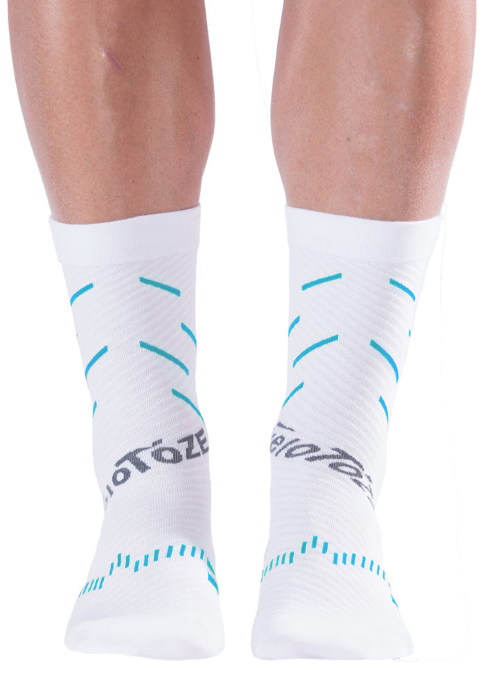 veloToze Fietssokken met Actieve Compressie zijn ontworpen om optimaal te presteren tijdens het fietsen. Het compressieniveau helpt de bloedtoevoer naar je voeten tijdens het fietsen te regelen. De Coolmax mix voert zweet af om je voeten droog en koel te houden. Zij zijn ontworpen om met of zonder veloToze Shoe Covers gedragen te worden. Of je nu aan het racen, trainen of fietst voor woon-werkverkeer, veloToze fietssokken houden je voeten droog en comfortabel.